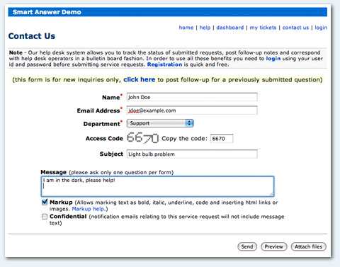 See the sample contact form in action on our help desk demo.